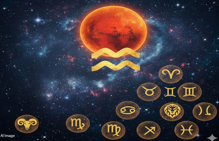 Mangal Gochar 2026: 23 ફેબ્રુઆરીના રોજ ગ્રહોના સેનાપતિ મંગળનું કુંભ રાશિમાં ગોચર થવા જઈ રહ્યું છે. આ રાશિમાં પહેલાથી જ રાહુ, બુધ, સૂર્ય અને શુક્ર ચતુર્ગ્રહી યોગ બનાવી રહ્યા છે. આવી સ્થિતિમાં શનિના સ્વામિત્વ વાળી કુંભ રાશિમાં મંગળનું ગોચર ખૂબ જ ખાસ માનવામાં આવી રહ્યું છે. જ્યોતિષ શાસ્ત્ર પ્રમાણે મંગળ વ્યક્તિને શક્તિશાળી અને સાહસી બનાવે છે. જો કુંડળીમાં મંગળની સ્થિતિ સારી હોય તો મુશ્કેલ કામ પણ સરળતાથી થઈ જાય છે. મંગળનું આ ગોચર 4 રાશિના જાતકો માટે ખૂબ જ સારું રહેશે. તો ચાલો જાણીએ કે આ ભાગ્યશાળી રાશિઓ કઈ-કઈ છે.