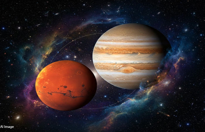 Navpancham Rajyog 2026: વૈદિક જ્યોતિષમાં મંગળ ગ્રહને ઉર્જા, સાહસ અને પરાક્રમના પ્રતીક માનવામાં આવે છે, જ્યારે બીજી તરફ ગુરુ ગ્રહને જ્ઞાન, ભાગ્ય અને વિસ્તારનો કારક માનવામાં આવે છે. જ્યારે આ બંને ગ્રહો ખાસ કોણ (લગભગ 120 ડિગ્રી) પર આવે છે, ત્યારે નવપંચમ રાજયોગ બને છે. દ્રિક પંચાગ પ્રમાણે માર્ચના અંતમાં ગુરુ અને મંગળ આમને-સામને આવીને નવપંચમ રાજયોગનું નિર્માણ કરશે. જેની અસર તમામ રાશિઓ પર પડશે, પરંતુ કેટલીક રાશિઓ માટે આ સમય વધુ લાભદાયી માનવામાં આવી રહ્યો છે. જ્યોતિષ શાસ્ત્ર પ્રમાણે જ્યારે ગ્રહ એક-બીજા સાથે અનૂકુળ સ્થિતિમાં હોય છે, તો વ્યક્તિના જીવનમાં નવી ઊર્જા, આત્મવિશ્વાસ અને પ્રગતિની તક વધી જાય છે. આ દરમિયાન યોગ્ય યોજના અને મહેનતથી સારા પરિણામ હાંસલ કરી શકાય છે.