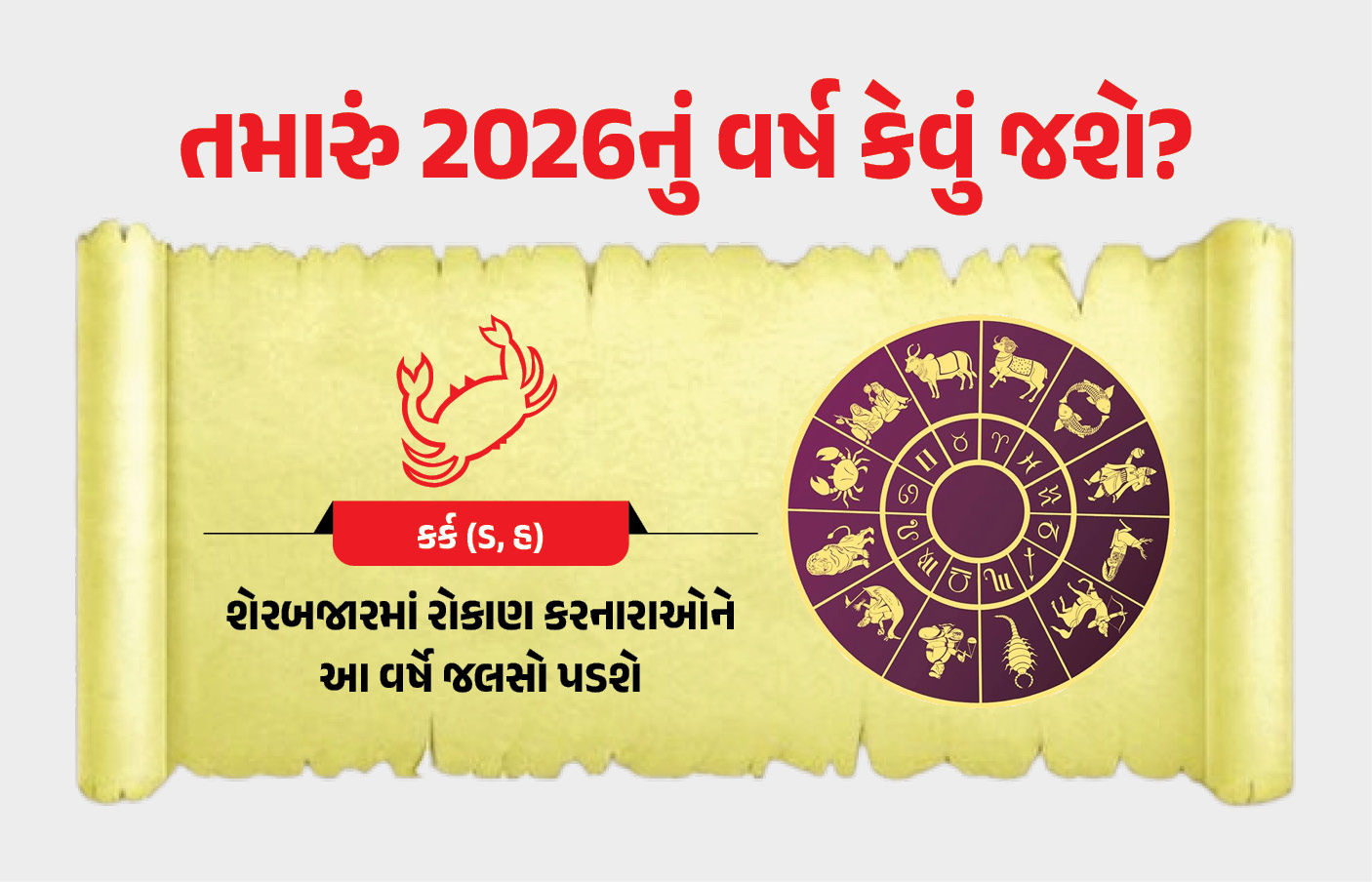 શેરબજાર સાથે સંકળાયેલા કર્ક રાશિના જાતકો માટે આ વર્ષ સુખદાયી નીવડશે. કર્ક રાશિમાં બેઠેલા ગુરુ મહારાજ જૂન 2026 પછી શેરબજાર સંકળાયેલા જાતકોને ફાયદો અપાવશે. આ વર્ષ દરમિયાન ધાર્મિક યાત્રા પાછળ ખર્ચ થાય અથવા બીમારીને કારણે દવાદારૂમાં પણ નાણાં ખર્ચવા પડે. આઠમા ભુવનમાં બેઠેલા રાહુ અચાનક લાભ અપાવે એવી શક્યતા પણ છે. અલબત્ત, શનિ મહારાજ ત્રીજી દ્રષ્ટિથી લાભસ્થાનને જોતા હોવાથી અને કેતુ મહારાજ ધનસ્થાનમાં બેઠા હોવાથી લાભમાં થોડોક વિલંબ થઈ શકે.