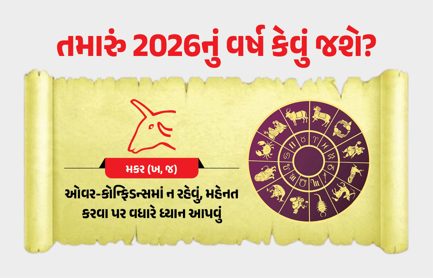 Capricorn Rashifal 2026 : ક્રાંતિવૃત 270થી 300 અંશ સુધીમાં મકર લગ્નનો સમાવેશ થાય છે. રાશિનો સ્વામી શનિ થાય છે. નક્ષત્રના અધિપતિ સૂર્ય, ચંદ્ર અને મંગળ થાય છે. રાશિનું ચિહ્ન મૃગના મુખવાળો મગર છે. પૃથ્વી તત્ત્વ સ્વભાવે ી રાશિ છે. સલામતીનો ગુણ સૌથી વધુ જોવા મળે છે. આરંભે શૂરા ગણાય. કોઈ કાર્યમાં જો ફાયદો ન થાય તો કાર્ય અધવચ્ચેથી છોડી દે. સ્વામી શનિ હોવાથી ચિંતનશીલ સૌથી વધારે જોવા મળે છે. ફ્લેક્સિબલ ખાસ્સા. ગુસ્સો આવે તો જલ્દી ઉતરે નહીં. સ્વાર્થની માત્રા વધારે હોય. મગરનું ચિહ્ન હોવાથી દેખાવે ભોળા, પરંતુ દાઢમાં રાખે તંત છોડે નહીં. મગર પાણીમાં પણ રહે અને જમીન પર પણ રહે. મગરના આંસુ પાડીને કોઈને સારી રીતે પોતાનું કામ કરાવી શકે. ક્યારેક લાગણીઓનો અભાવ જોવા મળે. મકર રાશિમાં ઉત્તરાષાઢા, શ્રવણ અને ધનિષ્ઠા જેવા નક્ષત્રનો સમાવેશ થાય છે. ઉત્તરાષાઢા નક્ષત્રમાં જન્મેલ જાતકમાં નબળા ગુણો બાદ થાય છે. ઉત્સાહ વધુ અને સ્વાર્થ ઓછા જોવા મળે. જે વ્યક્તિનો શ્રવણ નક્ષત્રમાં જન્મ હોય તો એમનામાં આ રાશિના દુર્ગુણ વિકસે છે. ઘનિા નક્ષત્રમાં જન્મેલ જાતક ઉત્સાહનો અતિરેક હોય. કોઈપણ બાબતની પકડ વધુ હોય, સ્વાર્થ વૃતિ થોડીક ઓછી.