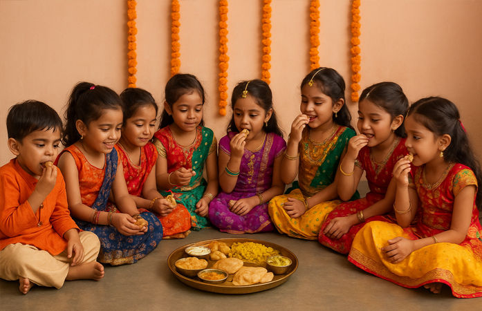 Navratri Kanya Bojan : નવરાત્રિનું પર્વ ચાલી રહ્યું છે. આવતીકાલ એટલે કે, 30 સપ્ટેમ્બર દુર્ગા અષ્ટમીની પૂજા કરવામાં આવશે. એ પછી બીજા દિવસે નવમીની પૂજા કરવામાં આવશે. નવરાત્રિના આઠમા દિવસે દેવી દુર્ગાના મહાગૌરી સ્વરૂપની પૂજા કરવામાં આવે છે, જ્યારે નવમા દિવસે દેવી દુર્ગાના મહિષાસુરમર્દિના રૂપની પૂજા કરવામાં આવે છે. આઠમા અને નવમા દિવસે કન્યા પૂજન કરવામાં આવે છે. આ ઉપાસકો નાની કન્યાઓને તેમના ઘરે બોલાવીને તેમનું સ્વાગત કરે છે. દુર્ગા અષ્ટમી અને નવમી પર આ કન્યાઓને દેવીના સ્વરૂપ તરીકે પૂજા કરવામાં આવે છે. આ સમય દરમિયાન કન્યાઓ સાથે એક બટુક (છોકરો) જેને લંગુર અથવા લંગુરિયા તરીકે ઓળખવામાં આવે છે, તેને કન્યાઓ સાથે બેસાડવામાં આવે છે.