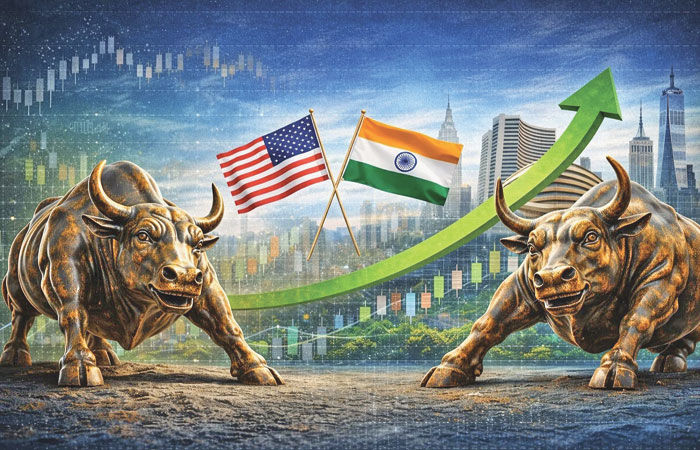 મુંબઈ : ભારત-અમેરિકા વચ્ચે ગઈકાલે ટ્રેડ ડિલ માટે બન્ને દેશો સંમત થયાના અને ટેરિફમાં ઘટાડો પણ કરાતાં આજે શેરોમાં ફંડો, મહારથીઓએ સાર્વત્રિક તેજીનું તોફાન મચાવ્યું હતું. લોકલ ફંડોની સાથે ફોરેન ફંડો પણ શેરોમાં વેચાણો કાપીને ફરી મોટાપાયે ખરીદદાર બની જતા આજે જાતેજાતમાં તેજીમાં આવી ગયા હતા. ટ્રેડ ડિલ સાથે વૈશ્વિક મોરચે ક્રુડ ઓઈલના ભાવમાં તીવ્ર ઘટાડાની અને અમેરિકી ડોલર સામે ભારતીય રૂપિયો આજે ૧.૫૦ રૂપિયા જેટલો જંગી વધી આવ્યાની પોઝિટીવ અસરે આજે શેરોમાં લાવલાવની પાટીયા ઝુલવા લાગ્યા હતા. સેન્સેક્સ ૨૦૭૨.૬૭ પોઈન્ટની છલાંગે ૮૩૭૩૯.૧૩ અને નિફટી ૫૦ સ્પોટ ઈન્ડેક્સ ૬૩૯.૧૫ પોઈન્ટ ઉછળીને ૨૫૭૨૭.૫૫ બંધ રહ્યા હતા.
