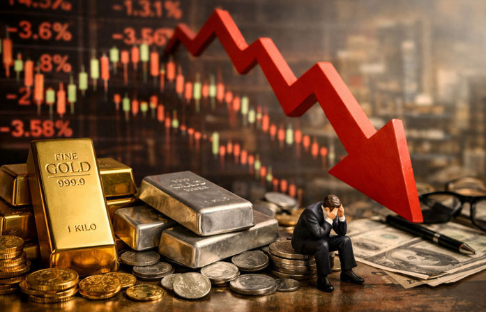 Gold Silver Market Crash: આજે 12 ફેબ્રુઆરીએ સોના ચાંદીના ભાવમાં ભારે ઘટાડો જોવા મળ્યો છે. ઇન્ડિયા બુલિયન ઍન્ડ જ્વલર્સ એસોસિએશન (IBJA) મુજબ, એક કિલો ચાંદીની કિંમત 7,316 રૂપિયા ઘટી ગઈ છે, જે હાલ પ્રતિ કિલો 2,59,133 પર આવી ગઈ છે. આ પહેલા બુધવારે ચાંદીની કિંમત 2,66,449 પ્રતિ કિલો હતી.