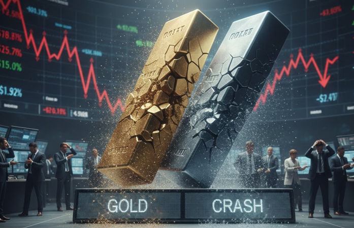 Silver Bubble Burst : સોના-ચાંદીના ભાવમાં ઘટાડાનો દોર (Gold-Silver Price Crash) સતત ચાલુ છે અને દરરોજ આ કિંમતી ધાતુઓ સસ્તી થઈ રહી છે. સોમવારના મોટા ઘટાડા બાદ મંગળવારે પણ ચાંદીના ભાવમાં કડાકો બોલાયો છે. મલ્ટી કોમોડિટી એક્સચેન્જ (MCX) પર ખુલતાની સાથે જ ચાંદીના ભાવમાં રૂ. 4,600થી વધુનો ઘટાડો જોવા મળ્યો હતો. બીજી તરફ સોનાના ભાવ પણ ગગડ્યા છે. ચાંદી હવે તેના ઓલ-ટાઇમ હાઇ લેવલથી રૂ. 1.80 લાખથી વધુ સસ્તી મળી રહી છે, જ્યારે સોનું રૂ. 38,000થી વધુ સસ્તું થયું છે.