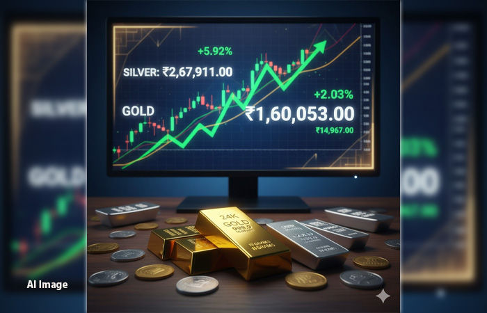 Silver and Gold MCX Price News : સોના અને ચાંદીના ભાવમાં આજે જોરદાર તેજી જોવા મળી છે. માર્કેટ શરુ થતાંની સાથે જ બંને કિંમતી ધાતુઓના ભાવમાં મોટો ઉછાળો આવતા રોકાણકારોમાં ભારે ઉત્તેજના જોવા મળી રહી છે. MCX(મલ્ટી કોમોડિટી એક્સચેન્જ)ના તાજા આંકડાઓ મુજબ સોનામાં ₹3,000થી વધુ અને ચાંદીમાં ₹15,000થી વધુનો એકઝાટકે વધારો નોંધાયો છે.