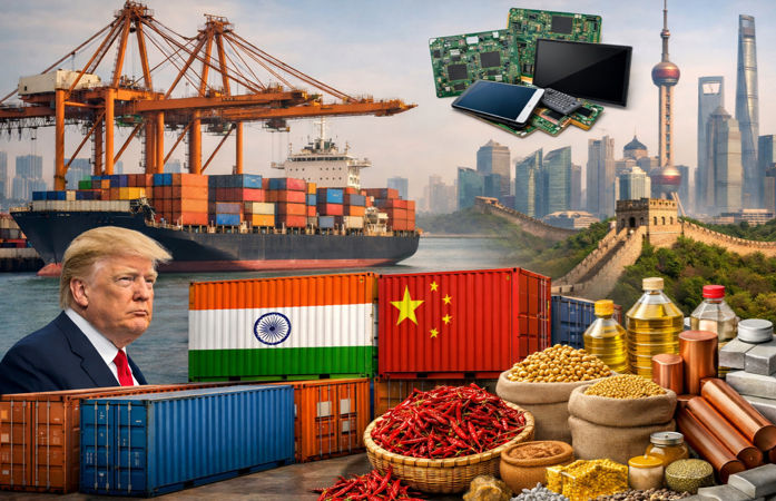 ભારતની નિકાસ પ્રોફાઇલમાં એક મહત્ત્વપૂર્ણ પરિવર્તન આવ્યું છે, જ્યાં હવે ભારત માત્ર કાચો માલ જ નહીં પરંતુ હાઈ-ટેક પ્રોડક્ટ્સ પણ મોટા પાયે ચીન મોકલી રહ્યું છે. આ બદલાવમાં સૌથી મોટો ઉછાળો ઇલેક્ટ્રોનિક્સ ક્ષેત્રે જોવા મળ્યો છે, જેમાં ખાસ કરીને 'પોપ્યુલેટેડ પ્રિન્ટેડ સર્કિટ બોર્ડ'(PCBs)ની નિકાસમાં અકલ્પનીય પ્રગતિ થઈ છે, તેની નિકાસ 2.39 કરોડ ડોલરથી સીધી વધીને 92.24 કરોડ ડોલર પર પહોંચી ગઈ છે. આ ઉપરાંત, ફ્લેટ પેનલ ડિસ્પ્લે મોડ્યુલ અને ટેલિફોની સાથે જોડાયેલા અન્ય અત્યાધુનિક ઉપકરણોની માંગમાં પણ નોંધપાત્ર વધારો થયો છે, જે સાબિત કરે છે કે ભારત હવે વૈશ્વિક બજારમાં ઉચ્ચ મૂલ્ય ધરાવતી ઇલેક્ટ્રોનિક પ્રોડક્ટ્સના ઉત્પાદક તરીકે મજબૂત રીતે ઉભરી રહ્યું છે.