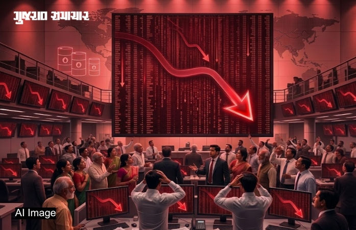 માર્કેટ કેપમાં રોકાણકારોને આશરે રૂ.3 લાખ કરોડનું નુકસાન થયું હોવાનું સામે આવ્યું છે. આ ઘટાડા પાછળના મુખ્ય કારણોમાં ક્રૂડ ઓઇલના ભાવમાં વધારો, વિદેશી બજારોમાંથી નબળા સંકેતો અને રોકાણકારો દ્વારા ભારે નફા-બુકિંગ હોવાનું માનવામાં આવે છે.