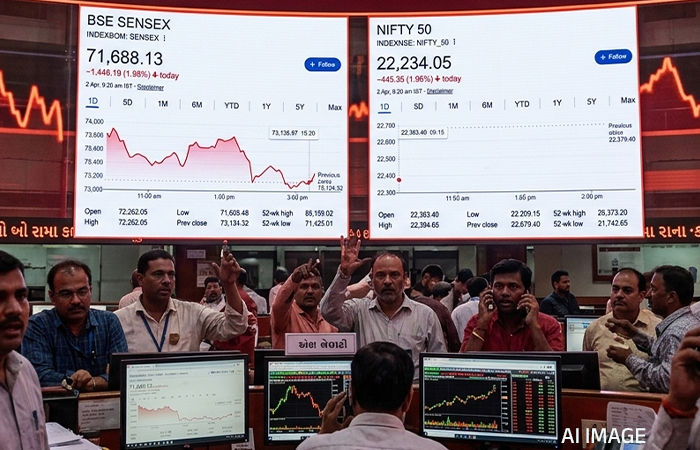 NSE નિફ્ટી-50 પણ આજે 22,700 ની મહત્વની સપાટી તોડી નીચે ઉતરી ગયો છે. નિફ્ટીમાં 445 થી 470 પોઈન્ટનો ઘટાડો જોવા મળ્યો છે.