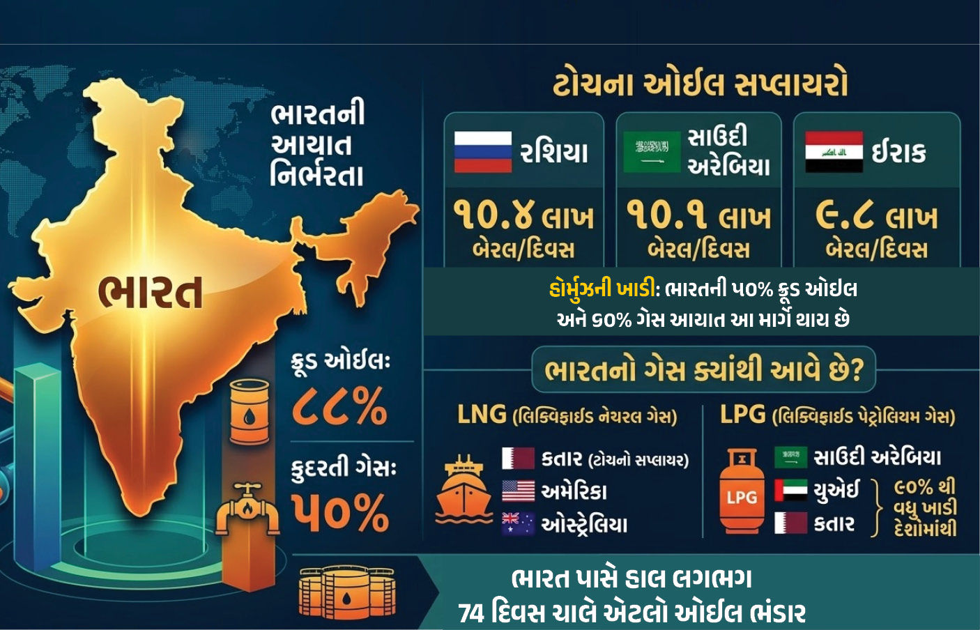ચાલો, સમજીએ ભારત તેનું ઓઈલ-ગેસ કયા દેશોમાંથી મેળવે છે અને તેની આયાત પરની નિર્ભરતા કેટલી છે.