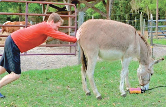 ગામમાં ધોળે દિવસે ભરબજારે તમાશો સર્જાયો. બન્યું હતું એવું કે એક અલમસ્ત હટ્વાકટ્વા યુવાને ગધેડાનું પૂછડું જોરથી પકડયું હતું. આનાં કારણે ગધેડો ભડકીને જોશભેર ભાગતો હતો અને પાછલા પગે યુવાનને જોશભેર લાતો મારતો હતો. બીજો કોઈ યુવાન હોત તો ગધેડાની એક જ લાત ખાતાં ત્રાહિ પોકારી ગયો હોત. પરંતુ આ હૃષ્ટ-પુષ્ટ યુવાન લાતો ખાવા છતાં પૂછડાંને વળગી રહ્યો હતો. આગળ જતાં પરિસ્થિતિ એ સર્જાઈ કે સ્પીડથી ભાગતા ગધેડાનાં કારણે યુવાન રીતસર ઢસડાતો ગયો અને સતત લાતો પડવાથી લોહીલુહાણ થતો રહ્યો. એ હવે બૂમો પાડતો હતો કે 'બચાવો..બચાવો.' પણ પકડેલું પૂછડું છોડે એ બીજા.