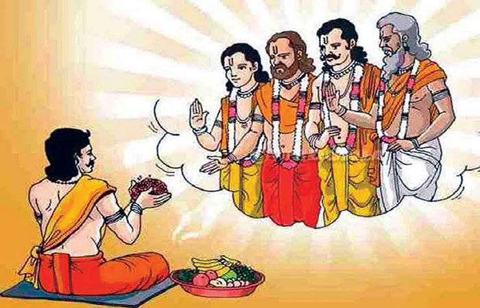 તેમણે નિમિને જણાવ્યું હતું કે તમારો પુત્ર અમારી પિતૃઓ અને દેવોની સાથે સ્થાન પામી ગયો છે કેમકે એના મરણ બાદ તમે એના આત્માના સંતોષ માટે પિતૃયજ્ઞા અર્થાત્ શ્રાદ્ધ કર્યું છે. તે વખતથી મરણ બાદ શ્રાદ્ધ ક્રિયા કરવાની શરૂઆત થઈ હતી એવું માનવામાં આવે છે. ભાદરવા સુદ પૂનમથી ભાદરવા વદ અમાસ સુધીના સોળ દિવસોને શ્રાદ્ધ પક્ષ કહેવાય છે. એમાં પિતૃઓ પિતૃલોકથી પૃથ્વી લોક પર સૂક્ષ્મરૂપે આવીને એમના વંશજો દ્વારા અર્પણ કરાયેલા ભોજ્ય પદાર્થો અને જળને સ્વીકારે છે, યાજ્ઞાવલ્ક્ય સ્મૃતિમાં કહેવાયું છે - આયુઃ પ્રજા ધનં વિદ્યા, સ્વર્ગ, મોક્ષ, સુખાનિ ચ । પ્રયચ્છન્તિ તથા રાજ્યં પ્રીતા નૃણાં પિતામહઃ ।। અર્થાત્ માનવો પર પ્રસન્ન થયેલા પિતૃઓ તેમને લાંબું આયુષ્ય, સંતતિ, ધન-સંપત્તિ, વિદ્યા, સુખ, સ્વર્ગ અને મોક્ષ પ્રદાન કરે છે.