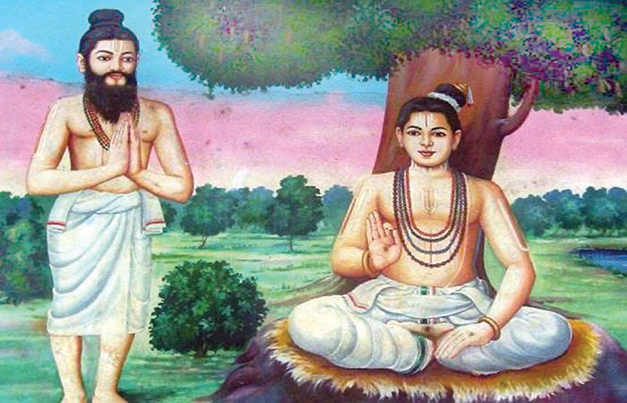 છેલ્લે તેમણે એક પથ્થર ઉઠાવી તેમની પાસેની દીવાલ પર ફેંક્યો. તેના અવાજથી તે જાગ્યા અને મધુર કવિને જોઈને સ્મિત કરવા લાગ્યા. મધુર કવિએ તેમને પ્રશ્ન કર્યો-'નાનું બાળક મૃત શરીર (કે પેટમાં) ઉત્પન્ન થાય તો તે શું ખાશે અને ક્યાં રહેશે ? (ચેત્તદિન્ વયિરિલ ચિરિયદુ પિરન્દાલ એત્તેત્ તિન્હુ એંગે કિડક્કુમ્ ?) સંત નમ્માળવારે તેમનું મૌન તોડી મધુર કવિને જવાબ આપતાં કહ્યું- તે એને ખાશે અને ત્યાં જ રહેશે (અત્તૈ તિન્હુ અંગે કિડક્કુમ્) નમ્માળવારના જવાબનો ગૂઢાર્થ એ હતો કે જો આત્મા શરીરને ઓળખી લે તો તે શરીરમાં જ રહેશે અને તેના વિશે વિચારશે. જો આત્મા દિવ્ય ભગવાન નારાયણને ઓળખી લે તો તે વૈકુંઠ (પરમ સ્થાન)માં નિવાસ કરશે અને માત્ર તેમનું જ ચિંતન-મનન કરશે. એટલે સૂક્ષ્મ આત્મા હૃદયના અંત:સ્થળમાં રહીને પ્રકૃતિના કર્મોનો દ્રષ્ટા રૂપે ઉપભોગ કરે છે. તે ક્ષેત્રજ્ઞાના રૂપે અસંગ થઈને પ્રકૃતિની ક્રીડાનો આનંદ લે છે. મધુર કવિ તેમના ગુરુ મળી ગયા અને બાળ નમ્મળવારને તેમનો પ્રથમ શિષ્ય મળી ગયો.