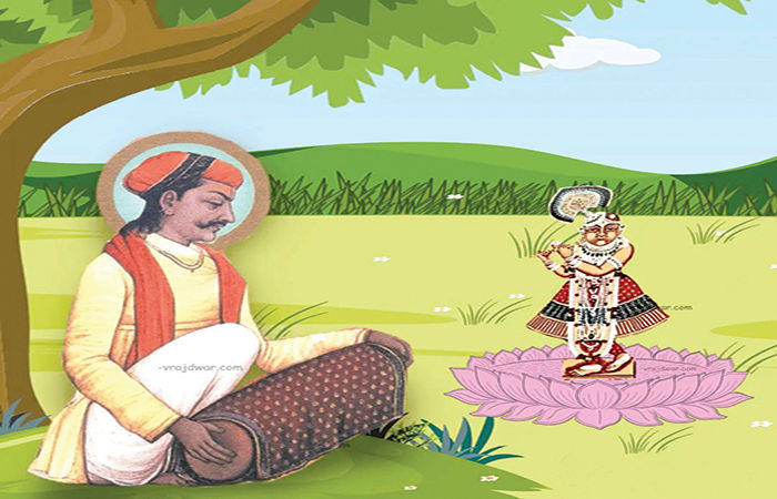 'મો મન ગિરિધર છબી પૈ અટક્યૌ। લલિત ત્રિભંગ ચાલ હૈ ચલિ કૈ, ચિબુક ચારુ ગડિ ઠટક્યૌ ।। સજલ સ્યામ ઘન બહન લીન હૈ, ફિરિ ચિત અનત ન ભટક્યૌ । કૃષ્ણદાસ પ્રિય પ્રાન નિછાવરિ, યહ તન જગ સિર પટક્યૌ ।। સાતેય સ્વર એક સાથે એના નૂપુર નાદ પર નૃત્ય કરવા લાગ્યા. મૃદંગ, ઝાંઝ, વીણા અને કરતાલના તાલ સાથે રણઝણી ઉઠયા. આખું વાતાવરણ રસોદ્રેકથી ઉલ્લસિત થઈ ગયું. રસરાજ શ્રીકૃષ્ણ પ્રસન્ન થઈ ગયા.