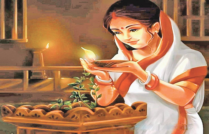 સત્ય નારાયણ કથાથી શુભારંભ કરીએ. કેળના પાનની છત્રછાયા વિષ્ણુ સહસ્ત્રનામના પાઠ માટે ૧૦૦૧ તુલસીપત્રોની વધામણી થાય છે. ચોખ્ખા ઘીના શીરામાં તુલસીપત્ર પડે કે તુરત એ મહાપ્રસાદ થઈ જાય.