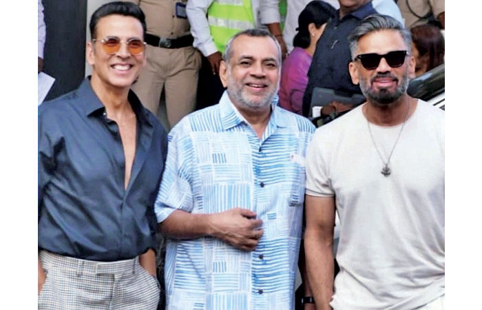 મુંબઇ: પરેશ રાવલ, અક્ષય કુમાર તથા સુનિલ શેટ્ટીની કોમેડી ફિલ્મ 'હેરાફેરી થ્રી'ના રાઈટ્સ બાબતે તકરાર થતાં આ પ્રોજેક્ટ અટકી પડયો છે. મૂળ મલયાલમ ફિલ્મ 'રામોજી રાવ સ્પિકિંગ'ના રાઈટ્સ ધરાવતા નિર્માત વિજય કુમારના દાવા અનુસાર પોતે આ ફિલ્મનું હિન્દી વર્ઝન બનાવવા માટે ફિરોઝ નડિયાદવાળાને એક જ વાર મંજૂરી આપી હતી. પરંતુ, નડિયાદવાળાએ તેના પરથી બે વાર ફિલ્મ બનાવી નાખી છે. નડિયાદવાળા પાસે આ ફિલ્મનો ત્રીજો ભાગ બનાવવાના કોઈ રાઈટ્સ નથી. પોતે આ બાબતે તેમનું ધ્યાન દોર્યું છે પરંતુ તેમણે કોઈ જવાબ આપ્યો નથી. આથી પોતે કાનૂની રસ્તો અપનાવી રહ્યા છે. અગાઉ આ ફિલ્મનાં કાસ્ટિંગ અંગે પણ વિવાદ થયો હતો. પરેશ રાવલે આ ફિલ્મ છોડી દેતાં ફિલ્મના સહ નિર્માતા અક્ષય કુમારે તેને કાનૂની નોટિસ પણ આપી હતી.