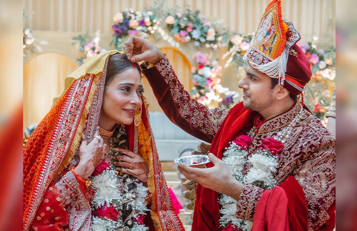 લાલ રંગના લહેંગામાં સજ્જ સારા ખાન, માંગમાં સિંદૂર અને માંગ ટીકા જેવા પરંપરાગત શણગાર સાથે એક ખૂબ સુંદર પહાડી દુલ્હન લાગી રહી હતી, તેનો લૂક ખૂબ જ આકર્ષક હતો.