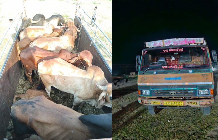 જેના આધારે ગઈકાલે મોડી રાત્રે પોલીસ વોચ ગોઠવી હતી. જે દરમિયાન ખિલોસ બસન પાસે એક આઇસર ટ્રક જે ને પસાર થતાં પોલીસ દ્વારા તેની તલાસી લેવામાં આવી હતી, જે તલાસી દરમિયાન મીની ટ્રકની અંદર બાર જેટલા પશુઓને પણ પ્રકારના ખોરાક પાણી આપ્યા વિના બાંધીને ભરવામાં આવ્યા હતા.