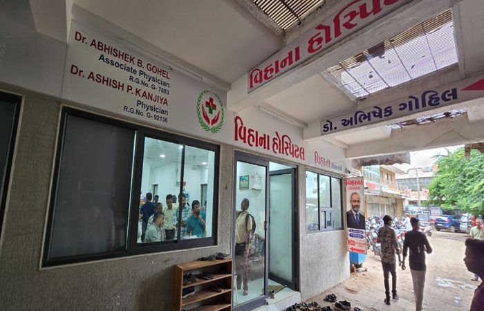 શહેરના બસ સ્ટેન્ડ રોડ પર આર્ટસ કોલેજ સામે આવેલા બ્રહ્માનંદ ચેમ્બરમાં ખનગી વિહાના હોસ્પિટલમાં ડો.અભિષેક ગોહેલ અને ડો.અશિષ કાંજીયા દર્દીઓની તપાસ અને સારવાર કરે છે. બી-ડિવીઝન પોલીસ મથકે થયેલી લેખિત ફરિયાદ મુુજબ ગુજરાત હોમિયોપેથિક કાઉન્સીલમાં નોંધાયેલી નોંધણી નંબર પરથી ડો. અભિષેક ગોહેલ (બી.એચ.એમ.એસ.) હોમિયોપેથીની ડીગ્રી ધરાવતા હોવા છતાં હોસ્પિટલના બોર્ડ અને પ્રીસ્ક્રિપ્શનમાં એસોસીએટ ફિઝિશ્યન તરીકેની ઓળખ દર્શાવી એલોપેથિક દવાઓ દર્દીઓને પ્રીસ્ક્રિપ્શનમાં લખતા હતા.