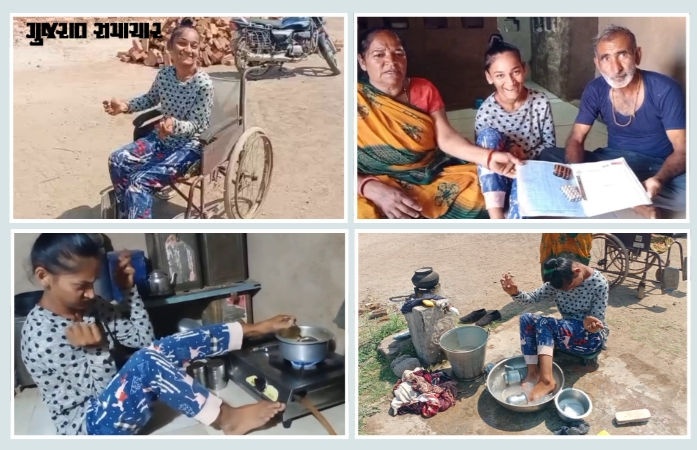 Bhukhli Sathali Village Girl Inspirational Story : અમરેલીના વડીયા તાલુકાનું ભુખલી સાથલી ગામની સાદી-સરળ માટીમાં જન્મેલી સાધનાબેન બાબુભાઈ જીકાદરા આજે સંઘર્ષ, શ્રદ્ધા અને મનોબળનું જીવંત પ્રતિક બની ગઈ છે. જન્મના ફક્ત છ મહિનામાં જ આવેલી આંચકીના કારણે સાધનાના શરીર પર ઘણી ઉંડી અસર કરી હતી. આંચકીના કારણે સાધના તેના હાથેથી કોઈ કામ કરી ન શકતી હતી અને મોઢું પણ સ્થિર રહેતું ન હતું. આમ, સાધનાના હાથો નિષ્ફળ થયા છે, પણ પગ તેના જીવનનો આધાર બન્યા છે. ત્યારે ચાલો જાણીએ ભૂખલી સાથલીની સાધનાની અદભૂત સંઘર્ષગાથા.
