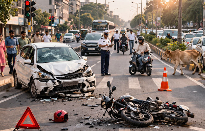 બીજી તરફ, શહેરમાં રખડતા પશુઓની સમસ્યા પણ ગંભીર બની રહી છે. રસ્તા વચ્ચે અચાનક પશુઓ આવી જતા વાહનચાલકો નિયંત્રણ ગુમાવી દે છે અને અકસ્માત સર્જાય છે. શહેરના ઘણા વિસ્તારોમાં જોખમી ડીવાઈડર કટ્સ હજુ પણ ખુલ્લા હોવાથી અકસ્માતનો ખતરો વધે છે. ચાલુ વાહને મોબાઇલફોન પર વાતો કરવી અને સતત લોકેશન નિહાળતા વાહન હંકારવું પણ અકસ્માતને નોતરું આપે છે. સાથે જ નશાની હાલતમાં વાહન ચલાવવાના બનાવો પણ ચિંતા વધારે છે.