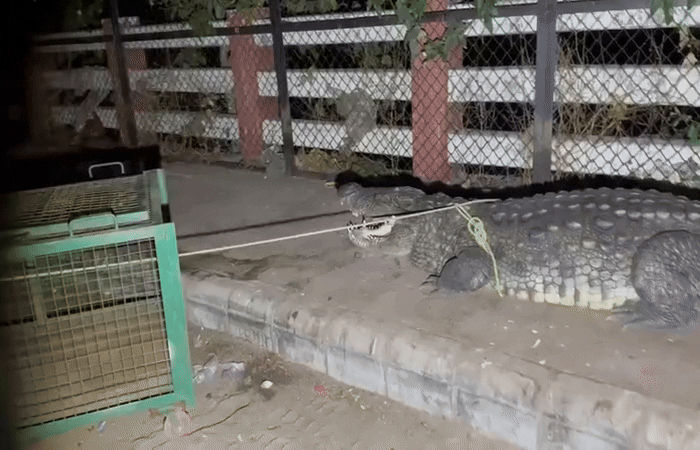 Vadodara Crocodile Rescue : વડોદરાના કારેલીબાગ વિસ્તારમાં ગઈ મધરાતે એક મહાકાય મગર રોડ પર આવી જતા તેનું રેસ્ક્યુ કરતા નાકેદમ આવી ગયો હતો.