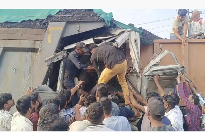 પાછળના ભાગે ધડાકાભેર અથડાયું હતું. અકસ્માત એટલો પ્રચંડ હતો કે ડમ્પરનો આગળનો ભાગ
