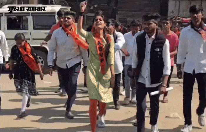 ABVP Staged Protest In Nasvadi : નસવાડી (છોટાઉદેપુર): છોટાઉદેપુર જિલ્લાના નસવાડીમાં આદિજાતિ વિભાગની ગંભીર બેદરકારી સામે આવી છે. નસવાડીમાં કાર્યરત 'મણીબેન પટેલ કન્યા છાત્રાલય'માં છેલ્લા એક વર્ષથી મહિલા વોર્ડન ન હોવાને કારણે આદિવાસી દીકરીઓ પુરુષ વોર્ડનના હવાલે હોવાનો આક્ષેપ થયો છે. આ સંવેદનશીલ મુદ્દે આજે અખિલ ભારતીય વિદ્યાર્થી પરિષદ (ABVP) દ્વારા ઉગ્ર વિરોધ પ્રદર્શન કરવામાં આવ્યું હતું.