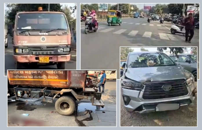 Accident Incident In Vadodara : વડોદરા શહેરમાં બે અલગ-અલગ અકસ્માતની ઘટનામાં બે માસુમના મોત નીપજ્યા છે. જેમાં કારેલીબાગ વિસ્તારમાં પાણીની ટાંકી પાસે ફાયર બ્રિગેડના ટેન્કરે અકસ્માત સર્જતા 10 વર્ષીય બાળકનું મોત થયું છે, જ્યારે અન્ય એક ઘટના મકરપુરા વિસ્તારમાં ઘટી હતી. આ બનાવમાં 6 વર્ષની બાળકીનું કરૂણ મોત નીપજ્યું. બંને બનાવને પગલે પોલીસે ગુનો નોંધીને આગળની કાર્યવાહી હાથ ધરી છે. જ્યારે ત્રીજી એક હિટ એન્ડ રનની ઘટનામાં એક મહિલાનું મોત નીપજ્યું હતું.