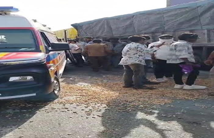ભરેલ એક ટ્રકમાંથી અકસ્માતને કારણે મગફળી રસ્તા પર ઢોળાઇ જતા નુકશાન પહોંચ્યું