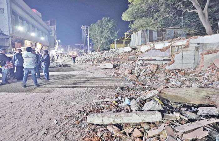 નડિયાદના હાર્દ સમાન વિસ્તારમાં આવેલા સરદાર ભુવન કોમ્પ્લેક્સની ૪૬ દુકાનો તોડી પાડવા માટે મંગળવારે વહેલી સવારથી તંત્ર દ્વારા કામગીરી શરૂ કરવામાં આવી હતી. મહાનગરપાલિકાએ આ ડિમોલેશનની કામગીરી એક ખાનગી એજન્સીને સોંપી હતી. મંગળવારથી શરૂ થયેલી આ પ્રક્રિયા ગુરુવારે દુકાનો તોડવા સાથે પૂર્ણ થઈ હતી, પરંતુ હજુ પણ કેટલીક દીવાલોના હિસ્સા તોડવાના બાકી હોવાનું દેખાઈ રહ્યું છે. આટલા દિવસો વીતી ગયા હોવા છતાં રસ્તા પરથી કાટમાળ હટાવવાની કોઈ નક્કર તજવીજ હાથ ધરવામાં આવી નથી, જેના કારણે શહેરનો મુખ્ય માર્ગ સંપૂર્ણપણે અવરોધાયેલો રહ્યો છે. કાટમાળના કારણે રસ્તો બંધ થતા વાહન વ્યવહારને રેલવે સ્ટેશન તરફના વન વે માર્ગ પર ડાયવર્ટ કરવામાં આવ્યો છે. આ ડાયવર્ઝનને કારણે દિવસ દરમિયાન અને ખાસ કરીને પીક અવર્સમાં ટ્રાફિક જામના દ્રશ્યો સર્જાય છે, જેમાં એમ્બ્યુલન્સ અને શાળાની બસો પણ ફસાઈ રહી છે. સ્થાનિકોનો આક્ષેપ છે કે ડિમોલેશનની કામગીરી બાદ કાટમાળ તાત્કાલિક હટાવવાની જવાબદારી પાલિકાની છે, પરંતુ છેલ્લા ૨ દિવસથી મહાનગરપાલિકાના જવાબદાર અધિકારીઓ સ્થળ પર ડોકાયા પણ નથી. ખાનગી એજન્સી દ્વારા થઈ રહેલી ધીમી કામગીરી અને તંત્રની નિષ્ક્રિયતા વચ્ચે હવે આ કાટમાળ ક્યારે દૂર થશે અને રસ્તો ક્યારે ખુલશે તે અંગે અનેક સવાલો ઉઠી રહ્યા છે.