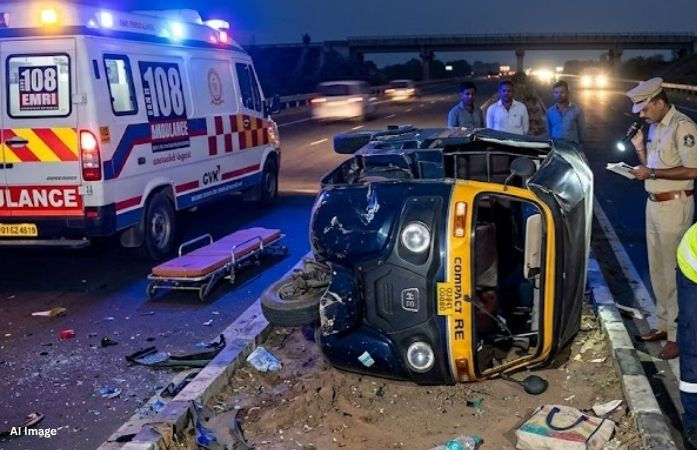 મળતી માહિતી મુજબ, મૂળ સાણંદના દદુકા ગામના અને હાલ બાવળા રહેતા 60 વર્ષીય ખેડૂત હિંમતસિંહ ડોડિયા ભાયલા ખાતે મોગલ ધામમાં લોકડાયરો સાંભળીને વહેલી સવારે પરત ફરી રહ્યા હતા. સવારે 4 વાગ્યાના સુમારે તે એક રિક્ષામાં આગળની સીટ પર બેઠા હતા. રિક્ષામાં પાછળના ભાગે મહિલાઓ સહિત અન્ય 6 પેસેન્જરો પણ સવાર હતા.