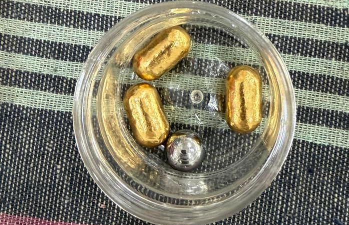 સરકારી મૂલ્યાંકનકાર દ્વારા કરવામાં આવેલી તપાસમાં જાણવા મળ્યું કે, રિકવર કરાયેલી વસ્તુઓમાંથી 3 પીળા રંગની નળાકાર કેપ્સ્યુલ્સમાં 24 કેરેટ શુદ્ધ સોનું હતું, જેનું કુલ વજન 135.200 ગ્રામ નોંધાયું છે. જ્યારે ચોથી વસ્તુ લોખંડનો ગોળો હોવાનું બહાર આવ્યું હતું. જપ્ત કરાયેલા આ સોનાની બજાર કિંમત અંદાજે રૂ. 21,89,564/- આંકવામાં આવી છે.
