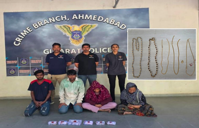 Ahmedabad News : ગુજરાત અને રાજસ્થાનના પ્રખ્યાત ધાર્મિક સ્થળો તેમજ ST બસોમાં ભીડનો લાભ ઉઠાવીને કિંમતી ઘરેણાંની ચોરી કરતી કુખ્યાત ગેંગને અમદાવાદ ક્રાઈમ બ્રાન્ચે ઝડપી પાડી છે. પોલીસે આ ટોળકી પાસેથી 11 લાખ રૂપિયાથી વધુની કિંમતના સોનાના દાગીના જપ્ત કર્યા છે. ઝડપાયેલા ચાર આરોપીઓમાં બે મહિલાઓનો પણ સમાવેશ થાય છે.
