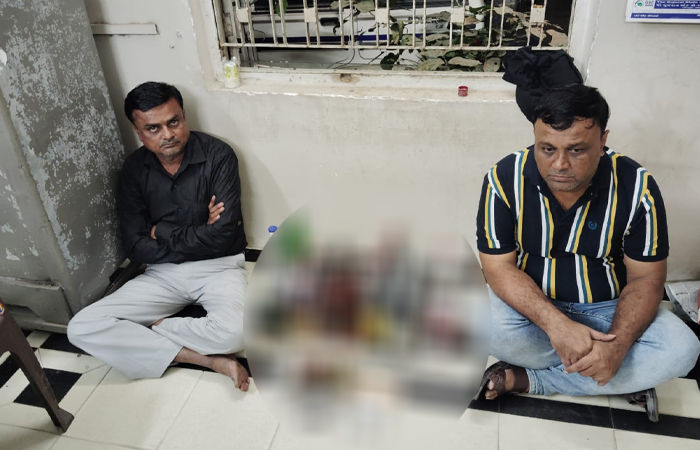 આ અંગે પોલીસને ચોક્કસ બાતમી મળી હતી કે નારણપુરામાં વીર સાવરકર સ્પોર્ટ્સ સંકુલ સામે આવેલા અર્જુન આઇકોનિક અને ઓશન કોલિના (Ocean Colina) ફ્લેટની આસપાસ શંકાસ્પદ પ્રવૃત્તિ ચાલી રહી છે. આ દરમિયાન તપાસ કરતાં આવી ગેરકાયદે પ્રવૃત્તિ ફેલેશિયા એપાર્ટમેન્ટમાં ચાલતી હોવાનું સામે આવ્યું હતું. ત્યાર પછી PCB ટીમે ત્યાં દરોડા પાડીને નકલી દારૂ બનાવતા બે લોકોને ઝડપી પાડ્યા હતા. આ બંને શખસની ઓળખ પ્રતિક દીપકકુમાર વ્યાસ (ઉં. 45) (રહેઠાણ- ફેલેશિયા ફ્લેટ, ઘાટલોડિયા) અને વિપુલ પ્રવીણભાઈ શાહ (ઉં. 48) (રહેઠાણ- શાહપુર, અમદાવાદ) તરીકે થઈ છે.