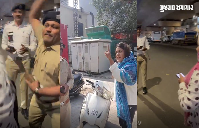 ઘટનાની શરૂઆત: ફૂટેજ સૂચવે છે કે ટ્રાફિક નિયમોના ભંગ બદલ જ્યારે રોકવામાં આવ્યા ત્યારે મહિલાએ સહકાર આપવાને બદલે ઘર્ષણનો માર્ગ અપનાવ્યો હતો, અને ગાળાગાળી કરી હતી