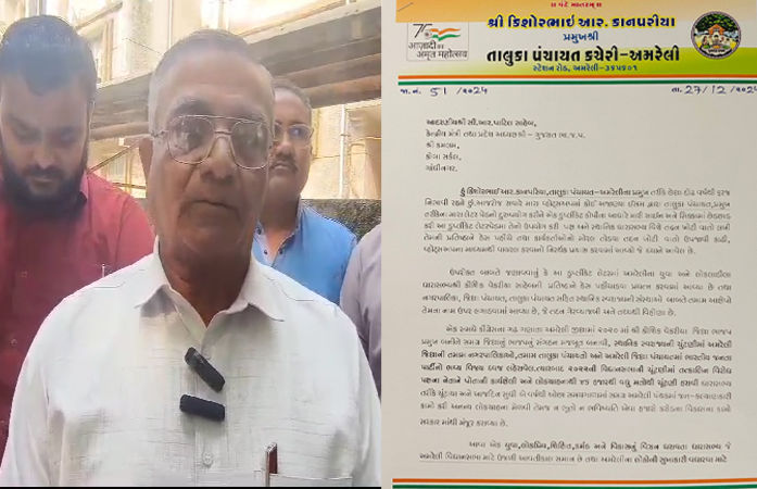 Amreli News : અમરેલીમાં તાલુકા પંચાયત પ્રમુખના નકલી લેટરપેડ વોટ્સએપમાં વાઈરલ થતા પ્રમુખ એક્શનમાં આવ્યા છે. લેટરમાં સ્થાનિક ધારાસભ્યને બદનામ કરવાનું કાવતરું ઘડાયું હોવાનું સામે આવ્યું હતું. જેમાં કોઈ શખસે અમરેલી તાલુકા પંચાયતના પ્રમુખના નામે નકલી લેટરપેડમાં નકલી સહી-સિક્કા કર્યા હતા અને લેટરમાં ધારાસભ્ય કૌશિક વેકરીયા પર ગંભીર આરોપો મુક્યા હતા. આ મામલે પ્રમુખ કિશોર કાનપરીયાને માહિતી મળતાની સાથે સમગ્ર ઘટના અંગે પોલીસને જાણ કરી હતી અને પત્ર લખીને સમગ્ર મામલે કેન્દ્રીય મંત્રી સી.આર. પાટીલને અવગત કર્યા હતા.