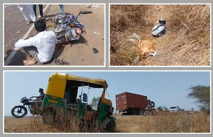 Rickshaw Bike Crash In Amreli: અમરેલી જિલ્લાના વડિયા તાલુકાના મોરવાડા ગામ નજીક અકસ્માતની ઘટના સામે આવી છે. અહીં એક પેસેન્જર રિક્ષા અને બાઈક વચ્ચે સર્જાયેલા અકસ્માત બાદ રિક્ષામાં છુપાવેલો દેશી દારૂનો જથ્થો રોડ પર વિખેરાઈ જતા પોલીસ તંત્ર દોડતું થયું હતું.