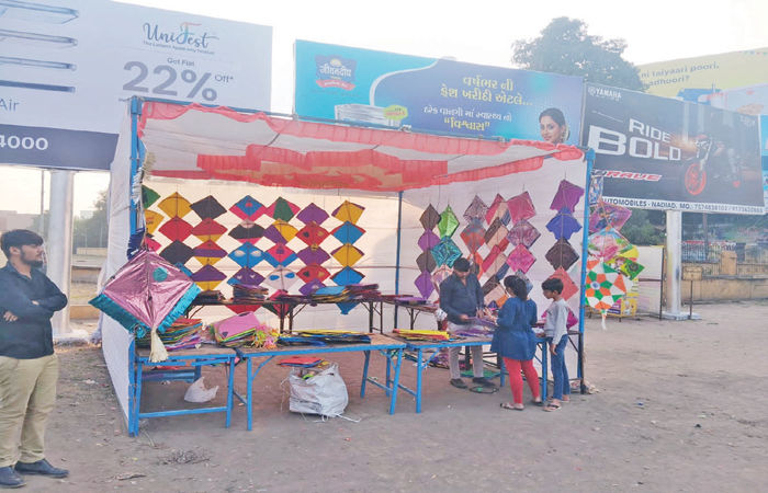 નડિયાદ : નડિયાદ શહેરના વ્યસ્ત ગણાતા પારસ સર્કલ વિસ્તારમાં આવેલા ઇપ્કોવાલા હોલના કમ્પાઉન્ડની બહાર મુખ્ય રોડની જગ્યા પર મોટો શેડ મારીને પતંગનો સ્ટોલ બનાવી દેવામાં આવ્યો છે. તહેવારોની સિઝનમાં સામાન્ય રીતે નાના વેપારીઓને રોડ પર ઉભા રહેવા બાબતે તંત્ર દ્વારા કડક વલણ અપનાવવામાં આવતું હોય છે, પરંતુ અહીં મંજૂરી વગર ઉભા કરાયેલા આટલા મોટા દબાણ સામે કોઈ કાર્યવાહી ન થતા સ્થાનિક લારી ધારકોમાં ભારે અસંતોષ જોવા મળી રહ્યો છે.