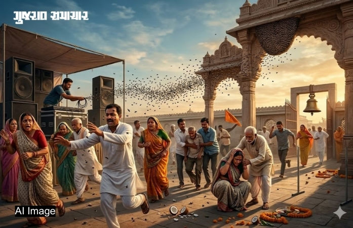 મળતી માહિતી મુજબ, દાહોદ જિલ્લાના દેવગઢબારિયા તાલુકાના અભલોડ ગામ ખાતે મહાદેવ મંદિરમાં જળાભિષેક અને પૂજાનો કાર્યક્રમ ચાલી રહ્યો હતો. સમગ્ર મામલે પ્રત્યક્ષદર્શીઓએ જણાવ્યું હતું કે, આ પ્રસંગમાં DJ વગાડતાં ભારે ઘોંઘાટ અને ધ્રુજારી થઈ હતી. જેને લઈને મંદિર પરિસરમાં રહેલા મધપૂડામાંથી મધમાખીઓ ઉડવા લાગી હતી અને મંદિરમાં હાજર લોકો પર અચાનક હુમલો કરી દીધો હતો.