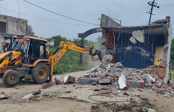 ચુસ્ત પોલીસ બંદોબસ્ત વચ્ચે વહીવટી તંત્ર દ્વારા ડિમોલિશન
