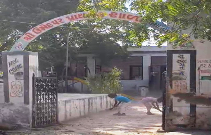 હાથમાં સાવરણા લઈ સફાઈ કરતા વિદ્યાર્થીઓનો વીડિયો વાઇરલ ઃ તાલુકા પ્રાથમિક શિક્ષણ અધિકારીનું અકળ મૌન