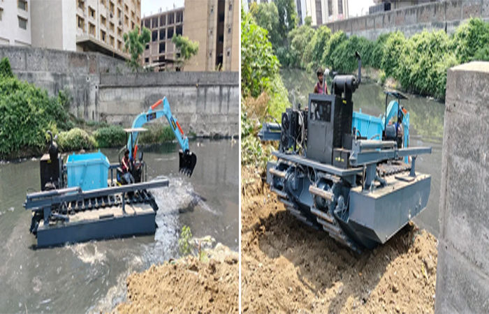 Surat : સુરતમાં ગત વર્ષે આવેલા ખાડી પૂરમાં મોટી સંખ્યામાં લોકો પ્રભાવિત થતા લોકોમાં તંત્ર સામે આક્રોશ જોવા મળતો હતો. આ આક્રોશ જોઈ પાલિકા તંત્ર વેળાસર જાગી ગયું છે. પાલિકા વિસ્તારમાંથી પસાર થતી ખાડીની સફાઇ પાલિકા તંત્ર કરે છે પરંતુ જ્યાં સફાઈ માટે એપ્રોચ ન હોય તેવા ખાડી વિસ્તારમાં ફ્લોટિંગ પોકલેન ત્રિપુરાથી મંગાવ્યા હતા જેમાંથી એક મશીન આવી ગયું છે તેનાથી સફાઈ પણ શરૂ થઈ ગઈ છે પાંચેક દિવસમાં અન્ય ચાર મશીન આવી જશે અને તેનાથી સફાઈની કામગીરી હાથ ધરવામાં આવશે.
