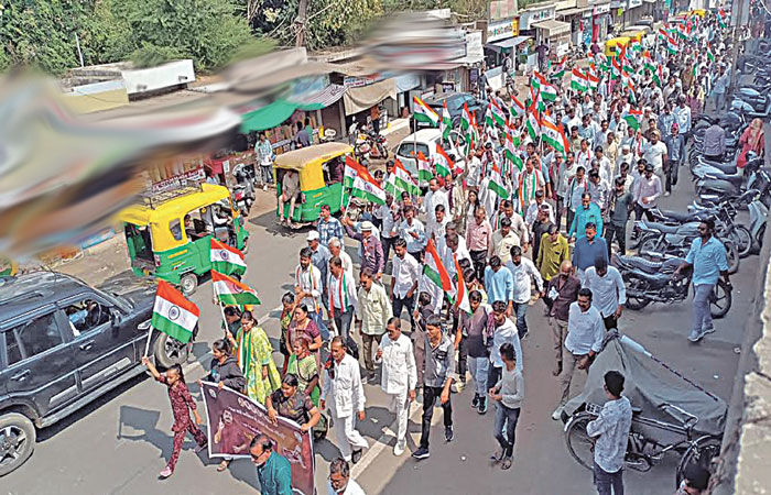 સુધી પદયાત્રા અને રેલી યોજી જિલ્લા ક્લેક્ટર તેમજ એસ.પી. કચેરી ખાતે આવેદનપત્ર
