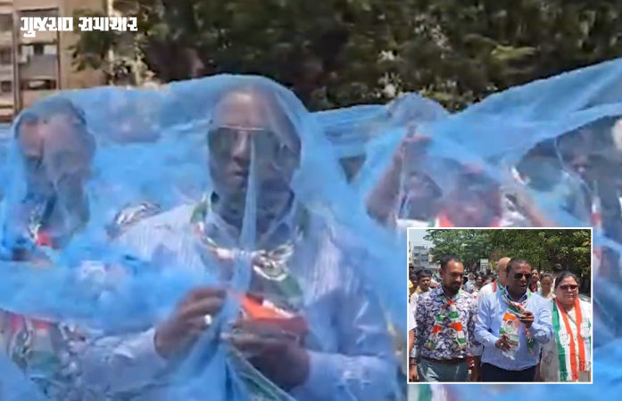 Navasari News : રાજ્યમાં સ્થાનિક સ્વરાજ્યની ચૂંટણી માટે ઉમેદવારી પત્ર ભરવાની આજે(11 એપ્રિલ, 2026) તારીખ છે, ત્યારે નવસારીમાં કોંગ્રેસના ઉમેદવારે અનોખી રીતે ફોર્મ ભરીને વિરોધ નોંધાવ્યો હતો. જેમાં હાથમાં દૂષિત પાણીની બોટલ અને શરીર પર મચ્છરદાની રાખીને કોંગ્રેસના ઉમેદવારે મહાનગર પાલિકાની ચૂંટણી માટે ઉમેદવારીપત્ર ભર્યું હતુ.