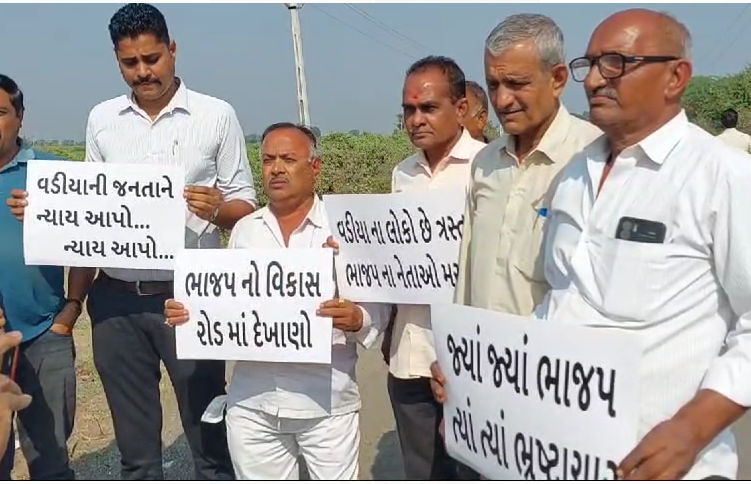 કોંગ્રેસ કાર્યકરો આ બિસ્માર રસ્તા પર બેનરો લઈને આવ્યા હતા. જેમાં લખ્યું હતું કે, 'વડીયાની જનતાને ન્યાય આપો... ન્યાય આપો', 'ભાજપનો વિકાસ રોડમાં દેખાણો', 'વડીયાના લોકો છે ત્રસ્ત ભાજપના નેતાઓ મસ્ત' અને 'જ્યાં જ્યાં ભાજપ ત્યાં ત્યાં ભ્રષ્ટાચાર'.