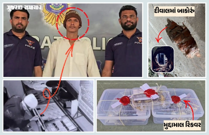 ગત 8મી જાન્યુઆરીના રોજ વહેલી સવારે હાટકેશ્વર વિસ્તારમાં આવેલા સાગર એપાર્ટમેન્ટમાં સ્થિત એક સોનીની દુકાનમાં ચોરીની ઘટના બની હતી. 19 વર્ષીય આરોપી અશ્વિન ખડીયાએ દુકાનના મુખ્ય દરવાજે લાગેલી લોખંડની જાળી કે શટરને હાથ લગાવવાને બદલે પાછળની દીવાલમાં બાકોરું પાડ્યું હતું. કડિયાકામ કરતા આરોપીએ ખૂબ જ સાવધાનીપૂર્વક દીવાલમાં બાકોરું પાડીને અંદર પ્રવેશ કર્યો હતો અને ગણતરીની મિનિટોમાં રૂ. 1.75 લાખના ચાંદીના દાગીના ચોરીને રફુચક્કર થઈ ગયો હતો.