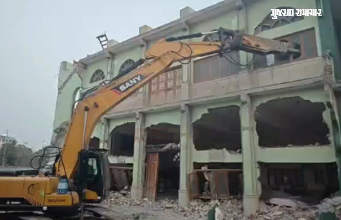 Bulldozer Action: દમણના ખારીવાડ વિસ્તારમાં વહીવટી તંત્ર દ્વારા સરકારી જમીન પરના દબાણ દૂર કરવામાં આવ્યા છે. બસ સ્ટેન્ડ નજીક આવેલી સિયા જાફરી મસ્જિદનું બાંધકામ ગેરકાયદે હોવાનું ખૂલતાં આજે બુધવારે બુલડોઝર કાર્યવાહી દ્વારા બાંધકામ તોડી પાડવામાં આવ્યું છે.