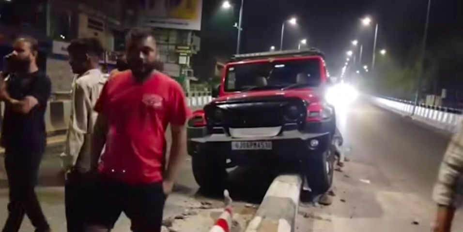 વડોદરાઃ ગોત્રી વિસ્તારમાં ગઇકાલે રાત્રે ત્રણેક વાગ્યાના અરસામાં એક થાર કારના ચાલકે નશામાં ચૂર અવસ્થામાં ડિવાઇડર પર કાર ચડાવી દીધી હોવાનો બનાવ બન્યો હતો.