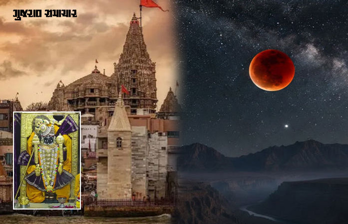 Dwarka Jagat Mandir Phuldol Utsav : આગામી 3 માર્ચે ચંદ્રગ્રહણ છે, જેમાં ચંદ્રગ્રહણનો કુલ સમયગાળો 3 કલાક અને 27 મિનિટનો રહેશે. પરંતુ ભારતમાં ઘણા રાજ્યો અને શહેરોમાં આ ગ્રહણ સાંજે 6 વાગ્યા પછી જ માત્ર અડધો કલાકથી 45 મિનિટ માટે જોવા મળશે. જ્યારે કેટલાક રાજ્યો અને શહેરોમાં ચંદ્રોદય ગ્રહણ કાળ પછી થવાનો હોવાથી ગ્રહણ જોવા મળશે નહીં. જેના લીધે વિવિધ શહેરોમાં ચંદ્રગ્રહણ પાળવા મામલે અલગ-અલગ મત પ્રવર્તે છે. જો કે, ભારતમાં કેટલાક ભાગોમાં ગ્રહણ દેખાવાના કારણે મંદિરોમાં વેધકાળ વગેરેનું પાલન સહિતની પરંપરાઓ અનુસરવામાં આવશે. એટલે ચંદ્રગ્રહણના સમયગાળાને ધ્યાનમાં રાખીને દ્વારકાના જગતમંદિરમાં બપોરે જ ફૂલડોલ ઉત્સવની ઉજવણી કરવામાં આવશે, જાણો દર્શન અને સેવા ક્રમનો નવો સમય.