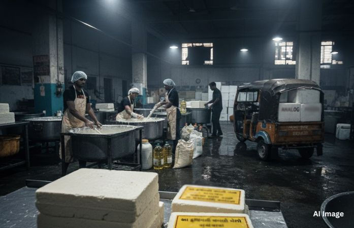 Fake Paneer Exposed in Ahmedabad: જો તમે હોટલ કે રેસ્ટોરન્ટમાં પનીરનું શાક ખાવાના શોખીન હોવ તો આ સમાચાર તમારા માટે આંખ ઉઘાડનારા છે. અમદાવાદની સેંકડો હોટલોમાં શુદ્ધ દૂધના પનીરને બદલે કેમિકલ, વનસ્પતિ તેલ અને સ્ટાર્ચમાંથી બનેલું ‘એનાલોગ પનીર’ પીરસવામાં આવી રહ્યું હોવાનો ચોંકાવનારો ઘટસ્ફોટ થયો છે. અસલી પનીર કરતા લગભગ અડધી કિંમતે મળતું આ નકલી પનીર લોકોના સ્વાસ્થ્ય માટે ગંભીર જોખમ ઊભું કરી રહ્યું છે.